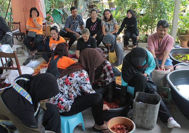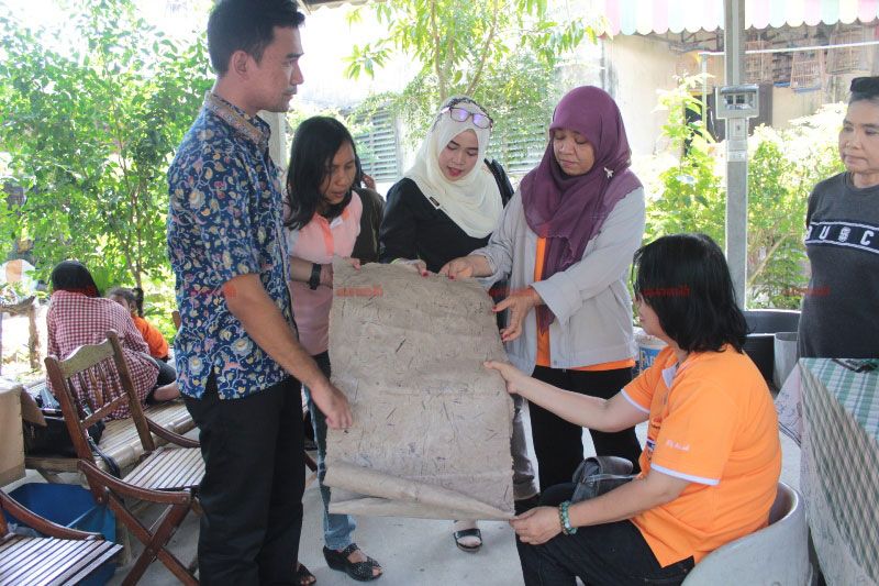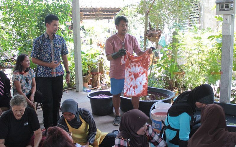 31 มี.ค.61 ที่ศูนย์การเรียนรู้ ซึ่งตั้งอยู่ภายในบ้านเลขที่ 85 ถนนเวฬุวัน ต.สะเตง อ.เมือง จ.ยะลา ที่นี่ได้มีกลุ่มสตรีที่มาจากหลายชุมชน ภายในเขตเทศบาลนครยะลา ต่างเดินทางไปเรียนรู้ ผลิตภัณฑ์ผ้ามัดย้อมที่มาจากสีธรรมชาติ ที่มาจาก “ดิน” และ เปลือกกล้วยหิน ที่มีมากในพื้นที่แห่งนี้