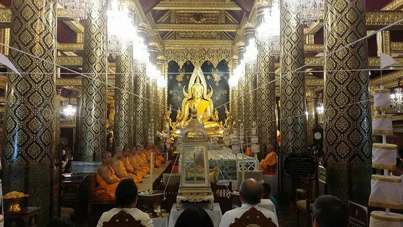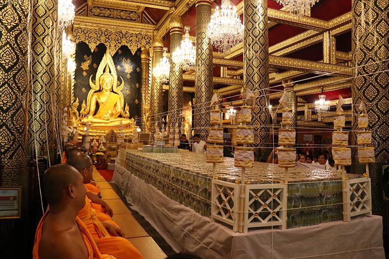 6 เม.ย.61 เมื่อช่วงค่ำวานนี้ ที่วิหารหลวงพ่อพระพุทธชินราช วัดพระศรีรัตนมหาธาตุ วรมหาวิหาร หรือวัดใหญ่ จ.พิษณุโลก นายภัคพงศ์ ทวิพัฒน์ ผู้ว่าราชการจังหวัดพิษณุโลก เป็นประธานในพิธีเสกน้ำพระพุทธมนต์ มหามงคลเนื่องในเทศกาลสงกรานต์ จังหวัดพิษณุโลก จำนวน 100,000 ขวด เพี่อนำไปมอบให้กับประชาชนที่เดินทางสัญจรผ่านทางจังหวัดพิษณุโลก เพื่อเป็นกุศโลบายในการเตือนให้ระมัดระวัง ในการใช้รถใช้ถนนให้มีสติด้วยความไม่ประมาท โดยมีเกจิอาจารย์ดังของจังหวัดพิษณุโลก โดยเฉพาะหลวงปู่แขก และหลวงตาละมัย มาร่วมอธิษฐานจิต พร้อมกับพระภิกษุสงฆ์เจริญพุทธมนต์ นานกว่า 1 ชม.