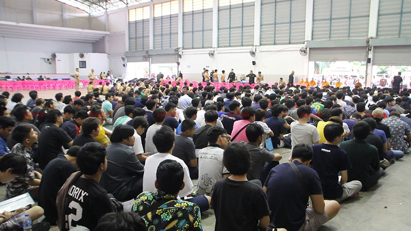 7 เม.ย.61 บรรยากาศการเกณฑ์หารในพื้นที่เมืองพัทยา อ.บางละมุง จ.ชลบุรี ในระหว่างวันที่ 7-8 เมษายนนี้ ที่โรงเรียนเมืองพัทยา 2 ต.หนองปรือ อ.บางละมุง จ.ชลบุรี ซึ่งถือเป็นวันแรกพบว่าคึกคักตั้งแต่ช่วงเช้า เนื่องจากมีบรรดาชายฉกรรจ์ที่ครบอายุเข้าเกณฑ์ที่ต้องเข้ารับการตรวจเลือกได้มารายงานตัวกันอย่างคึกคัก รวมทั้งบรรดาผู้ปกครองและญาติมิตรที่เดินทางมาให้กำลังใจเป็นจำนวนมาก โดยมี พลตรียุทธชัย เฑียรทอง ผบ.มทบ.14 พร้อมด้วย นายนริศ นิรามัยวงศ์ นายอำเภอบางละมุง นำกำลังเจ้าหน้าที่ทหาร ตำรวจ อาสาสมัคร เข้าร่วมดูแลอย่างใกล้ชิด ซึ่งบรรยากาศเป็นไปด้วยความเรียบร้อย