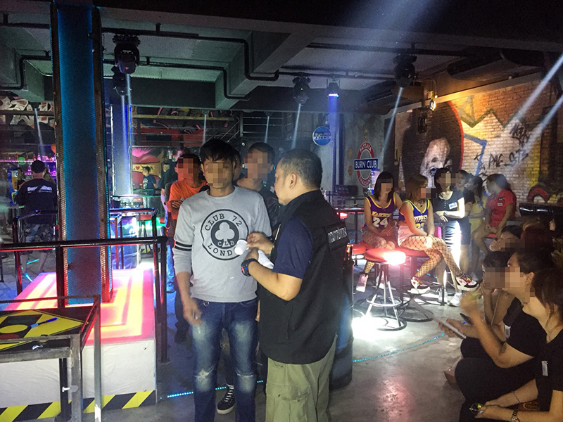 ทั้งนี้ จากการนำกำลังเข้าตรวจสอบ พบว่าผับดังกล่าวได้มีการจัดปาร์ตี้ โดยใช้ชื่อว่า "เมาไม่จับ ถ้ากลับจับเบิร์น" ซึ่งมีนักเที่ยววัยรุ่นชายหญิงจำนวนมากเข้าร่วมกิจกรรมปาร์ตี้ในครั้งนี้ เบื้องต้นเจ้าหน้าที่ได้สั่งหยุดกิจกรรมทันที พร้อมทั้งสั่งเปิดไฟร้าน และคัดแยกนักเที่ยวชายหญิงออกเป็น 2 ฝั่ง เพื่อสะดวกแก่การตรวจบัตรประชาชน ว่ามีผู้ใดอายุต่ำกว่าที่กฎหมายกำหนดเข้ามาใช้บริการหรือไม่ รวมถึงการตรวจปัสสาวะนักเที่ยวเพื่อหาสารเสพติดในร่างกายอีกด้วย