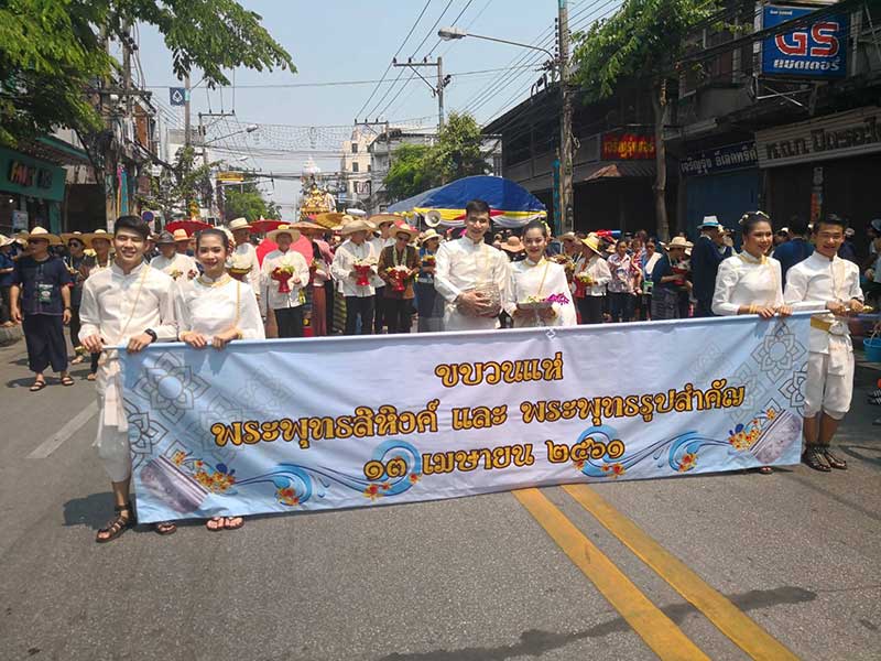 เมื่อช่วงเช้าวันนี้ (13 เม.ย.) ที่วัดพระสิงห์วรมหาวิหาร อ.เมือง จ.เชียงใหม่ ได้มีพิธีอัญเชิญพระพุทธสิหิงค์ พระพุทธรูปเก่าแก่คู่เมืองเชียงใหม่ จากพระวิหารลายคำขึ้นประดิษฐานบนบุษบกเพื่อเคลื่อนไปให้ประชาชนได้สรงน้ำที่เชิงสะพานนวรัตน์ ร่วมกับขบวนพระพุทธรูปสำคัญในเมืองเชียงใหม่ รวมกว่า 50 ขบวน ก่อนที่จะเคลื่อนผ่านไปยังประตูท่าแพ โดยมีนายปวิณ ชำนิประศาสน์ ผู้ว่าราชการจังหวัดเชียงใหม่ เป็นประธานในพิธีฝ่ายฆราวาส