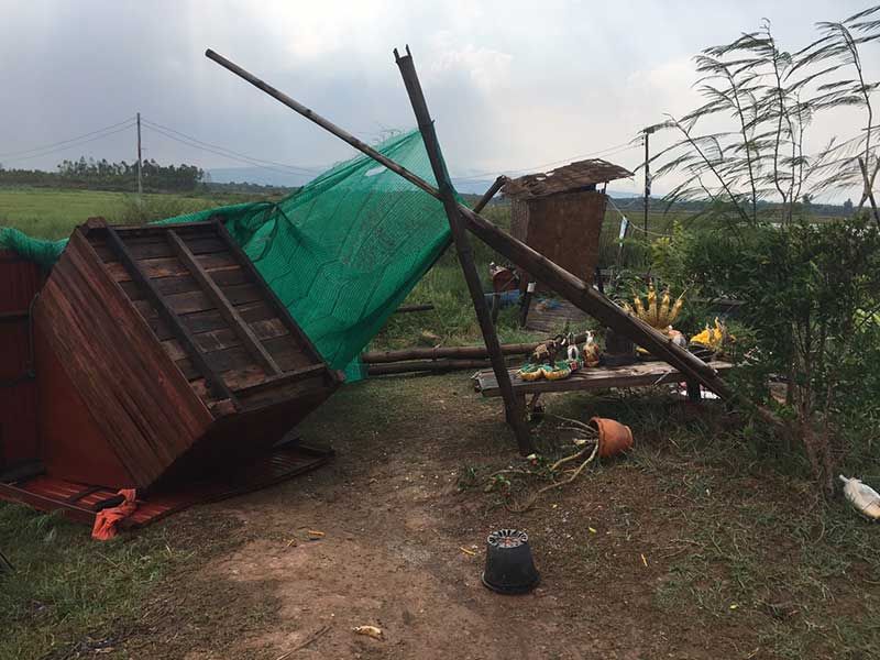 ก่อนที่จะเกิดพายุฤดูร้อนถล่ม อุณหภูมิสูงในพื้นที่จังหวัดหนองคายสูงเกือบ 40 องศาเซลเซียสต่อเนื่องติดต่อกันหลายวัน ก่อนเกิดพายุลมแรงพัดถล่ม “แพพันไร่” ท้องฟ้ามืดครึ้ม ก่อนจะมีลมหมุน ตามมาด้วยฝนตกและลูกเห็บตก มีนักท่องเที่ยวอยู่บนแพประมาณ 50 คน พายุได้พัดแพเข้าฝั่ง ชาวบ้านที่เป็นสมาชิกของกลุ่ม “แพพันไร่” ได้ฝ่าสายฝนและลุยน้ำเข้าช่วยเหลือปลอดภัยทั้งหมด ไม่มีผู้ได้รับบาดเจ็บและเสียชีวิต พายุลมแรงเกิดขึ้นเป็นระยะเวลาประมาณ 40 นาทีจึงสงบ เบื้องต้นชาวบ้านได้รายงานความเสียหายไปยังอำเภอแล้ว และต้องการความช่วยเหลือจากหน่วยงานที่เกี่ยวข้องโดยด่วน เพื่อจะได้เร่งซ่อมแซม แพ ร้านค้า และที่จอดรถ ที่เสียหาย รับนักท่องเที่ยวในช่วงนี้ ที่ถือเป็นช่วงที่มีนักท่องเที่ยวเข้ามาท่องเที่ยวมากที่สุด