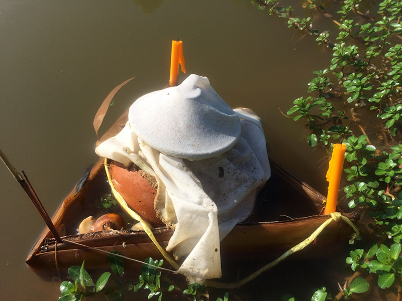 2 พ.ค.61 ผู้สื่อข่าวประจำ จ.สุรินทร์ รายงานว่า ได้มีชาวบ้านออกไปหว่านแหจับปลา บริเวณห้วยคลองส่งน้ำห้วยลำพอก เส้นห้วยคลองระหว่างต.ยางและต.กุดหวาย อ.ศีขรภูมิ จ.สุรินทร์ ได้พบกับหม้อดินเผาปิดฝา ปิดด้วยผ้าขาวบางผูกเชือกฟาง เย็บเปลือกกล้วยเป็นกระทงรูปสามหลี่ยม มีธูป เทียน ปักไว้ด้านข้าง กว้างขนาด 20 ซม. ลักษณะคล้ายหม้อจิ้มจุ่ม ที่ขายทั่วไปตามท้องตลาด ลอยมาติดบริเวณริมฝั่งห้วย แต่ด้วยความกลัวจึงไม่ใครกล้ากล้าเปิด และต่างพากันวิ่งเตลิดหนีไปคนละทิศละทาง