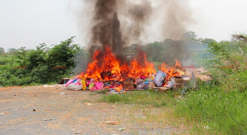 เจ้าหน้าที่ได้นำสินค้าต่างๆ เป็นจำนวนมากที่คดีสิ้นสุดแล้วไปทำทำลาย ณ ศูนย์กำจัดขยะมูลฝอยครบวงจร เทศบาล ต.แม่สาย อ.แม่สาย ประกอบไปด้วยเสื้อผ้าลายดอกยี่ห้อดังจำนวน 4,000 ตัว เครื่องเล่นเกมส์จำนวน 6 เครื่อง ยาจุดกันยุงชนิดขดจำนวน 1,200 ชุด กล่องบะหมี่กึ่งสำเร็จรูปจำนวน 440 กล่อง กาแฟลดความอ้วนจำนวน 2,400 ซอง และอื่นๆ เช่น ยาต่างๆ อาหารเสริม กระเป๋า ผ้าเช็ดตัว ผ้าห่ม ผ้าปูที่นอน ชุดคลุมเบาะรถยนต์ ฯลฯ โดยมีทั้งสินค้าที่หลบหนีการตรวจสอบของเจ้าหน้าที่ศุลกากรและเป็นสินค้าที่ละเมิดเครื่องหมายการ ค้า โดยมีรวมกันทั้งสิ้นจำนวน 16,696 ชิ้น มูลค่ารวมกันประมาณ 6.5 ล้านบาท
