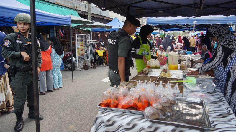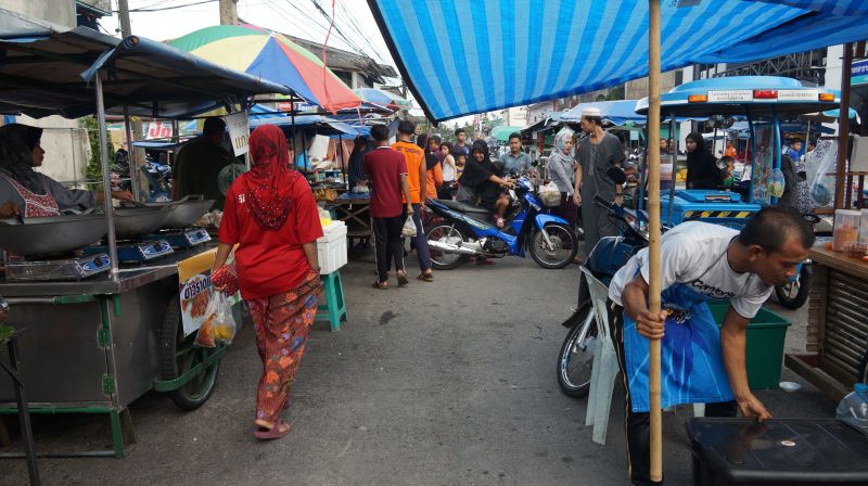 20 พ.ค.61 วันที่ 3 ของการถือศีลอดในเดือนรอมฎอน ที่อำเภอสุไหงปาดี จ.นราธิวาส บรรยากาศเป็นไปอย่างคึกคัก โดยมีผู้ที่นับถือศาสนาอิสลามทั้งในพื้นที่ และจากประเทศมาเลเซีย ได้เดินทางมาจับจ่ายซื้ออาหารปรุงสำเร็จบริเวณตลาดรอมฎอน ที่เปิดไว้ คือ ที่ตลาดสดเทศบาลตำบลปะลุรู อำเภอสุไหงปาดี จังหวัดนราธิวาส ส่วนราคาอาหารนั้นในปีนี้พบว่าไม่ได้แตกต่างจากปีที่ผ่านมา โดยอาหารคาวส่วนใหญ่จำหน่ายในราคาถุงละ 30-50 บาท ขึ้นอยู่กับวัตถุดิบในการประกอบอาหาร ส่วนขนมหวาน ราคาถุงละ15-20 บาท ทั้งนี้อาหารคาวที่นิยมซื้อไปรับประทานจะเป็น แกงแพะ แกงเนื้อ แกงส้ม แกงจืด ไก่ทอด ปลาทอด และประเภทปิ้งย่าง ที่สามารถเก็บไว้บริโภคได้ช่วงเช้าตรู่ก่อนพระอาทิตย์ขึ้นในวันถัดไป