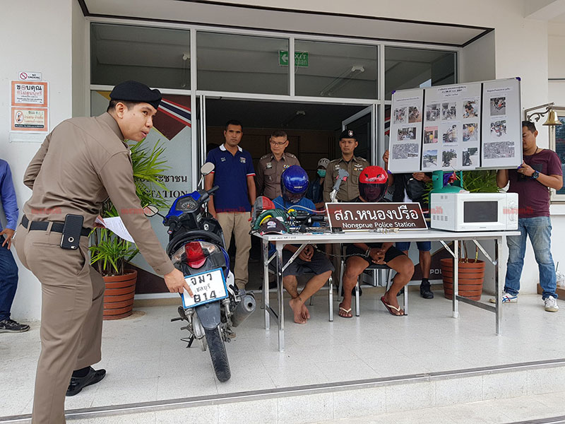 สำหรับรายที่ 2 จับกุมนายคมสัน หรือเน็ต สงฆ์นอก อายุ 23 ปี และ นายธีระพงษ์ หรือหญิง อะธิยะ อายุ 26 ปี 2 ผู้ต้องหาคดีลักทรัพย์ โดยตรวจยึดของกลางคืนมาได้ อาทิ ถังแก๊สหุงต้ม เตาไมโครเวฟ เครื่องตัดหญ้า โดยรับสารภาพก่อเหตุลักทรัพย์สินในพื้นที่ อ.บางละมุง มาหลายครั้ง