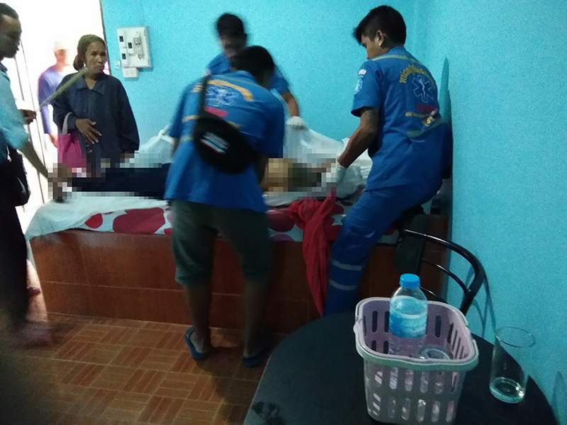 5 มิ.ย.61 ผู้สื่อข่าวประจำ จ.สุรินทร์ รายงานว่า เมื่อเวลา 15.58. น.ที่ผ่านมา ศูนย์วิทยุ 191 สภ.จอมพระ จ.สุรินทร์ ได้รับแจ้งว่ามีผู้เสียชีวิตในโรงแรมแห่งหนึ่ง ที่เกิดเหตุเป็นห้องเบอร์ 7 จึงวิทยุแจ้ง พตท.เทิดชัย สายแสงจันทร์ พนักงานสอบสวน สภ.จอมพระ พร้อมประสาน แพทย์เวร รพ.จอมพระ และเจ้าหน้าที่อาสาสมัครหน่วยกู้ชีพจอมพระ รุดตรวจสอบ และร่วมกันชันสูตรพลิกศพ