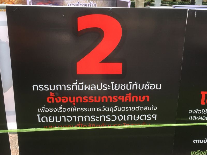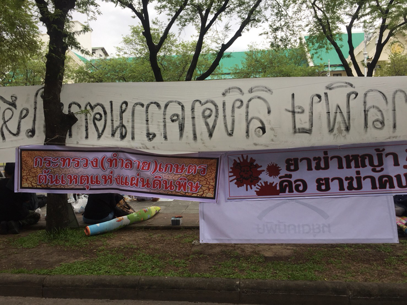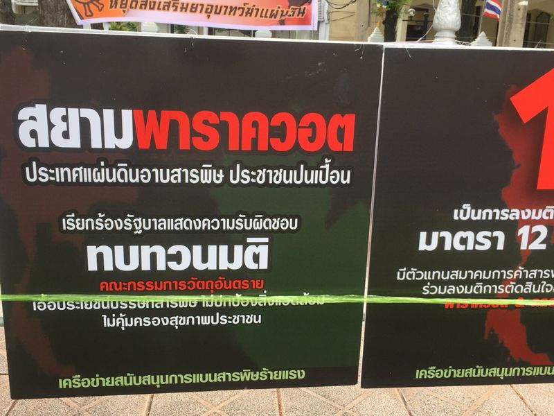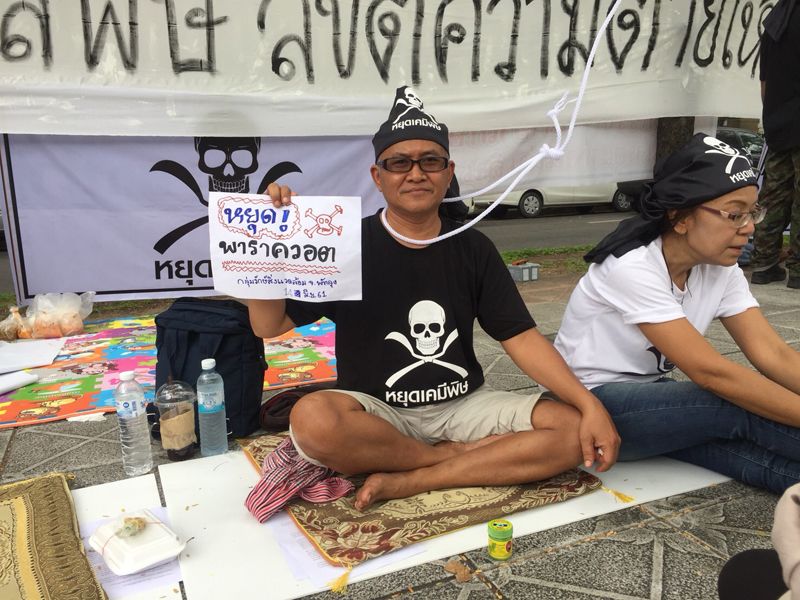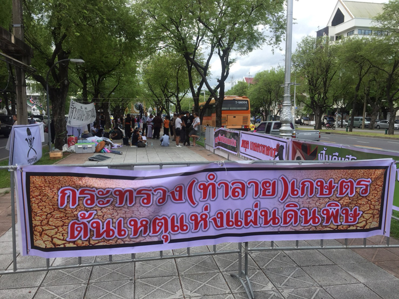 14 มิ.ย.61 ที่บริเวณหน้ากระทรวงเกษตรและสหกรณ์ นายอำนาจ เกตุขาว และนายประสิทธิ์ชัย หนูนวล นำกลุ่มเกษตรกร 50 คน เครือข่ายคนอินทรีย์วิถีเมืองลุง และภาคีเครือข่ายต้านสารเคมีวัตถุอันตราย 3 ชนิด พาราควอต - คลอร์ไพริฟอส - ไกลโฟเซต ได้มาปักหลักชุมนุมอย่างไม่มีกำหนด และติดป้ายโดยรอบพื้นที่โจมตีกระทรวงเกษตรฯ กระทรวงอุตสาหกรรม และรัฐบาล ที่ไม่มีมติยกเลิกใช้สารเคมีทั้ง 3 ชนิด