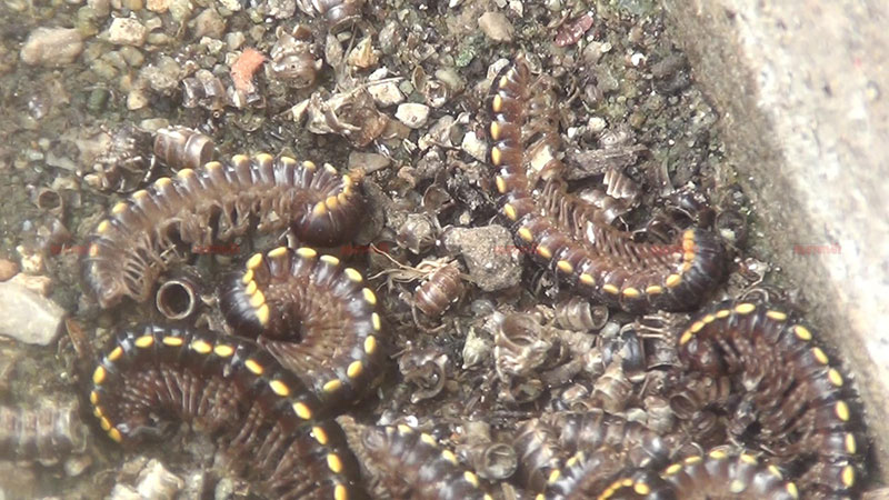 19 มิ.ย.61 นางสมจิตร รัตนวงศ์ ปลัดเทศบาลตำบลคลองพน อ.คลองท่อม จ.กระบี่ พร้อม เจ้าหน้าที่ ได้เข้าสำรวจ บริเวณห้องแถว และร้านค้า รวมทั้งสำนักงาน ธกส.ที่ตั้งอยู่ย่านชุมชน เขตเทศบาลตำบลคลองพน ม.1 ต.คลองพน อ.คลองท่อม เพื่อสำรวจฝูงกิ้งกือตะเข็บ หรือแมลงรถไฟ จำนวนนับล้านตัว เข้ามาเกาะตามพื้นบ้าน และผนัง สร้างความเดือดร้อนรำคาญแก่ประชาชนมานานกว่า 1 เดือนโดยจากการตรวจสอบของเจ้าหน้าที่พบว่า ยังมีกิ้งกือเข้ามา เกาะตามพื้น และผนัง และตามซอกหลืบต่างๆ อย่าง ต่อเนื่อง เช่นที่บริเวณริมรั้ว ธกส. แต่ก็ไม่มากเหมือนที่ผ่านมา เนื่องจาก มีฝนตกลงมา ในช่วง 2 วันที่ผ่านมา ทำให้ฝูงกิ้งกือตะเข็บ ลดน้อยลงประกอบกับมีการฉีดพ่นยาและผงสารเคมี กำจัดทุกวัน
