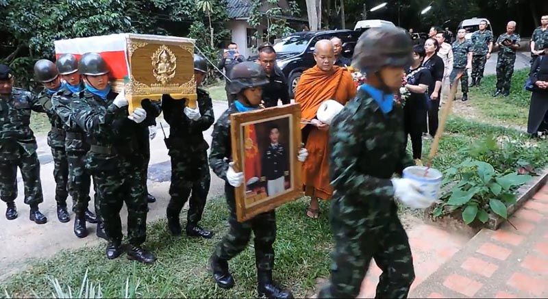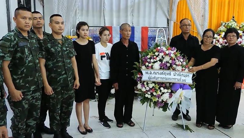 ทั้งนี้ พล.ต.อภิเชษฐ์ ซื่อสัตย์ ผู้บัญชาการกองกำลังนเรศวร จ.ตาก เป็นประธานสวดอภิธรรมศพ ท่ามกลางความโศกเศร้าของครอบครัว ซึ่งคืนนี้เป็นคืนแรกของการสวดพระอภิธรรมศพ ก่อนจะมีพิธีพระราชทานเพลิงศพในวันพฤหัสบดี ที่ 12 ก.ค.61 ทั้งนี้มีนายประจญ ปรัชญ์สกุล ผู้ว่าราชการจังหวัดเชียงราย ร่วมเป็นประธาน