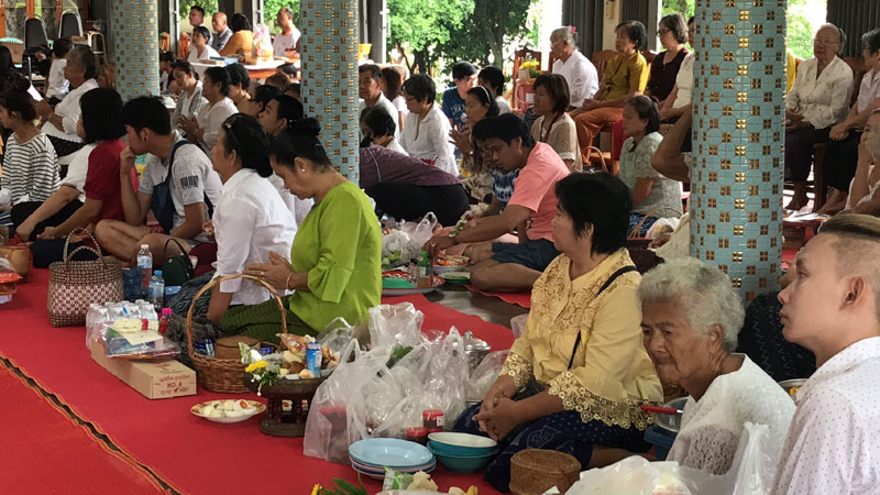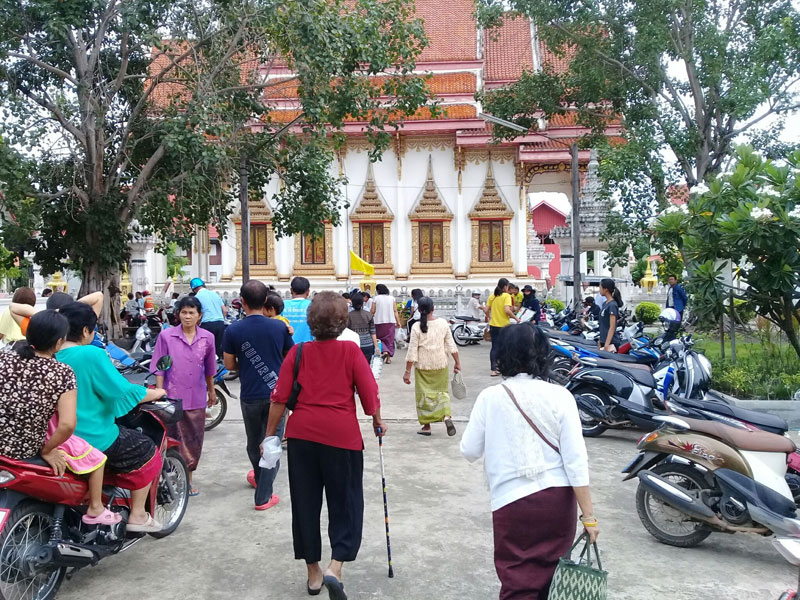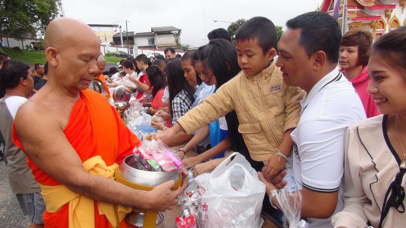 เช่นเดียวกับบรรยากาศการทำบุญตักบาตรภายในวัดต่างๆ ที่ จ.บุรีรัมย์ เป็นไปอย่างคึกคัก พุทธศาสนิกชนต่างพาบุตรหลานและสมาชิกในครอบครัว ทั้งเด็ก เยาวชน วัยรุ่นหนุ่มสาวหันหน้าเข้าวัดร่วมทำบุญนุ่งขาวห่มขาวปฏิบัติธรรมจนแน่นศาลาการเปรียญเพื่อความเป็นสิริมงคลแก่ตนเอง และครอบครัว พร้อมร่วมใจกันตั้งจิตอธิษฐานจะตั้งมั่นอยู่ในความดี ละเว้นความชั่วทุกชนิด และทำจิตใจให้ผ่องใส
