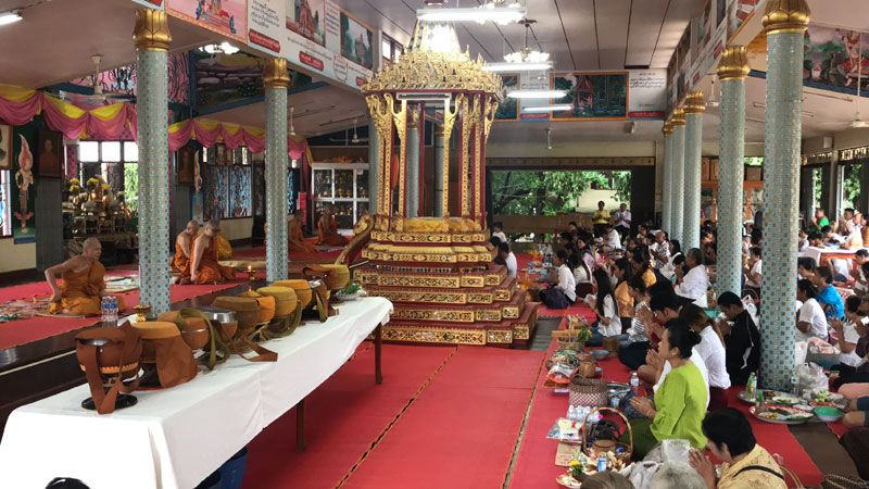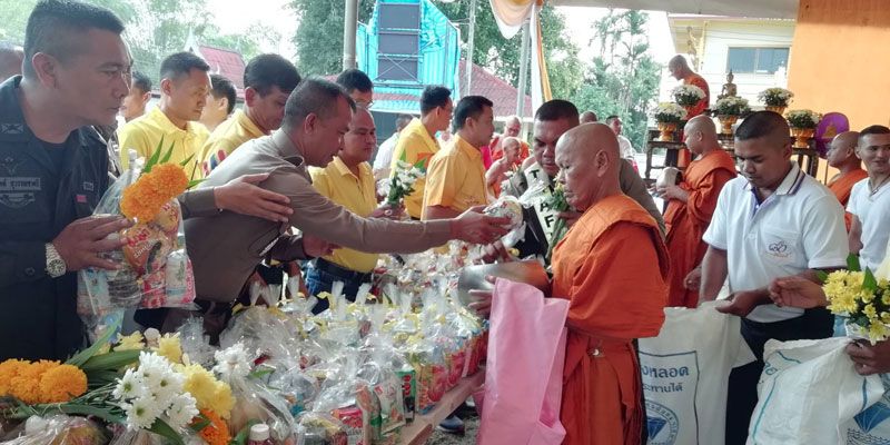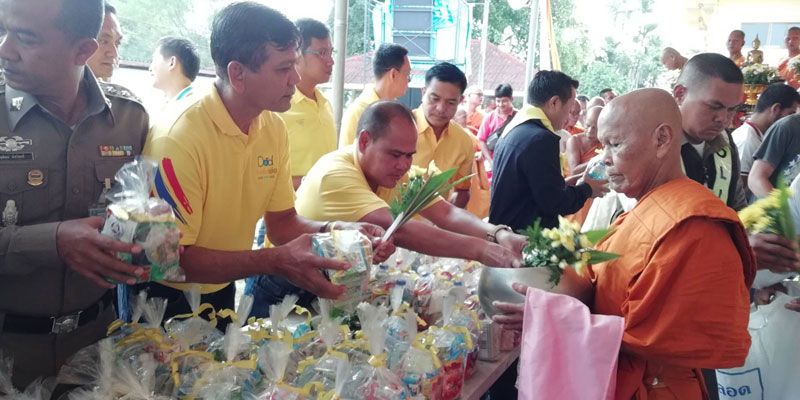 27 ก.ค.61 ผู้สื่อข่าวรายงานว่า ที่วัดประชุมชลธารา อำเภอสุไหงปาดี จังหวัดนราธิวาส นายรุ่งเรือง ธิมาบุตร นายอำเภอสุไหงปาดี เป็นประธานในพิธีตักบาตรวันอาสาฬหบูชา ถวายแด่สมเด็จพระเจ้าอยู่หัวมหาวชิราลงกรณ บดินทรเทพยวรางกูร โดย มีเจ้าหน้าที่ทุกหน่วยงาน ประชาชน และนักเรียนในพื้นที่ได้นำอาหารคาวหวาน ข้าวสารอาหารแห้ง ดอกไม้ธูปเทียนมาร่วมในพิธีทำบุญตักบาตรพระภิกษุสงฆ์ภายในวัดเป็นจำนวนมาก