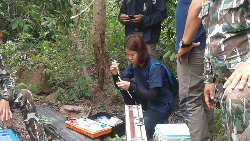 ต่อมา หมอโบว์ พร้อทีมงานำลงพื้นที่เพื่อทำการรักษาวัวกระทิงได้ที่ได้รับบาดเจ็บ เพื่อทำการรักษา โดยมีนายอารยันต์ ท่าใหญ่ นายอำเภอตาพระยาร่วมสังเกตการณ์