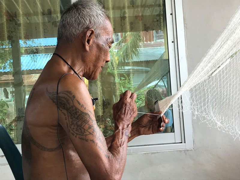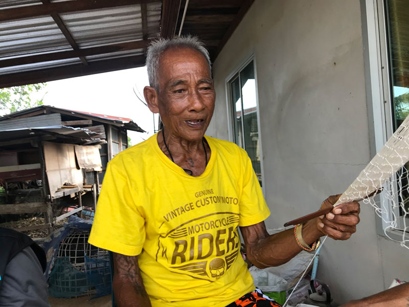 ตาสุขเป็นผู้สูงอายุที่อยู่บ้าน 2 คนกับหลานชาย เนื่องจากภรรยาเสียชีวิตไปเมื่อ 2 ปีที่แล้ว ทำให้ตาสุขรู้สึกเหงา นอนไม่ค่อยหลับ จึงใช้เวลาดังกล่าวในการสานแห เพื่อเป็นการบำบัดความเหงา ความเศร้า แต่สามารถเพิ่มรายได้ให้กับตนเองได้ด้วย จากการสอบถามตาสุข พบว่า ตาสุขจะใช้เวลาว่างส่วนใหญ่ในการนั่งสานแห เดือนหนึ่งได้ 2-3 อัน ขายราคาอันละ 1,300 - 1,500 บาท ไม่เคยต้องนำไปขายที่ไหน เนื่องจากมีลูกค้ามาสั่งจองเป็นจำนวนมาก สานไม่ทันขาย ทำแล้วรู้สึกว่าตนเองสนุก เพลิดเพลิน เหนื่อยก็พักดูทีวี หายเหนื่อยก็มาทำต่อ