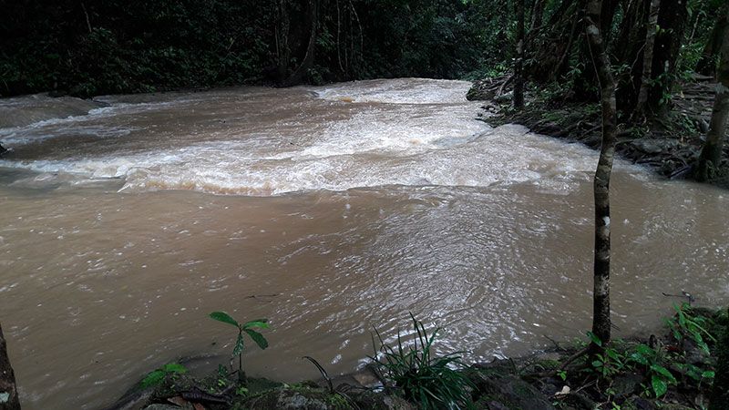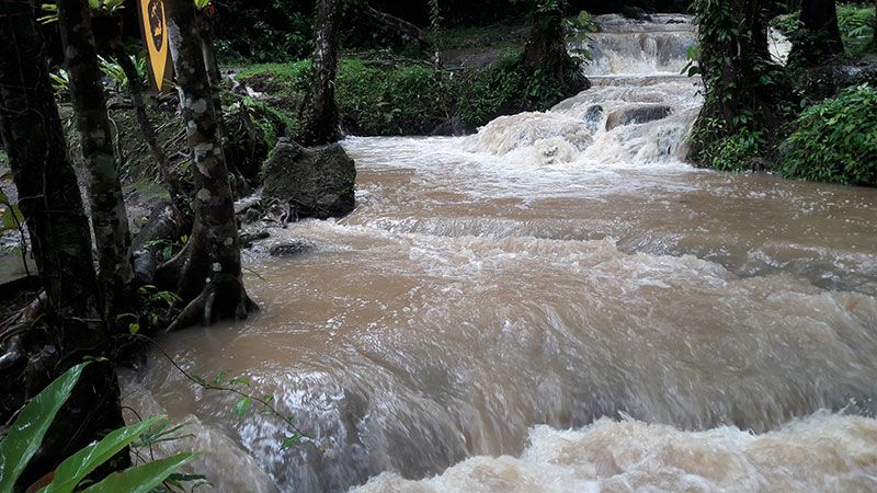 7 ส.ค.61 ผู้สื่อข่าวรายงานว่า น้ำตกสระนางมโนราห์ วนอุทยานสระนางมโนราห์ ต.นบปริง อ.เมือง จ.พังงา ปิดให้บริการนักท่องเที่ยวในช่วงฝนตกหนัก ปริมาณน้ำไหลเชี่ยวแรง สีน้ำขุ่น เสี่ยงอันตรายให้บริการต่อนักท่องเที่ยว และได้รับการแจ้งเตือนจากทางจังหวัดพังงา ให้เฝ้าระวังน้ำป่าไหลหลาก น้ำท่วมฉับพลัน จนถึงวันที่ 9 สิงหาคม 2561