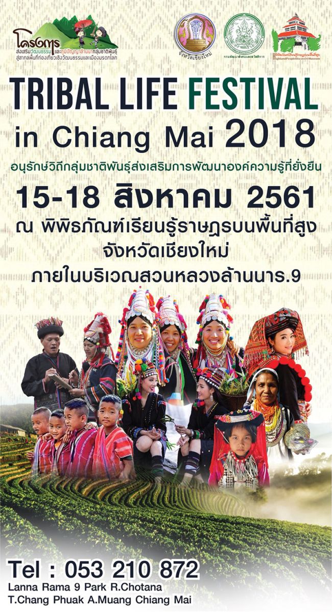 8 ส.ค.61 จังหวัดเชียงใหม่ ร่วมกับกรมพัฒนาสังคมและสวัสดิการ โดยพิพิธภัณฑ์เรียนรู้ราษฎรบนพื้นที่สูงจังหวัดเชียงใหม่ ได้จัดงานตามโครงการส่งเสริมวัฒนธรรมและภูมิปัญญาล้านนากลุ่มชาติพันธุ์ สู่สากลพื้นที่ท่องเที่ยวเชิงวัฒนธรรมและเมืองมรดกโลก กิจกรรมการบูรณาการการพัฒนาท่องเที่ยวกลุ่มชาติพันธุ์บนพื้นที่สูงอย่างยั่งยืน ภายใต้ชื่องาน “Tribal Life festival in Chiang Mai 2018” จัดขึ้นในระหว่างวันที่ 15-18สิงหาคม 2561 ณ พิพิธภัณฑ์เรียนรู้ราษฎรบนพื้นที่สูงจังหวัดเชียงใหม่ ภายในบริเวณสวนหลวงล้านนา ร.๙