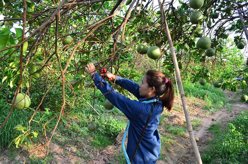 เมื่อเก็บผลส้มโอมาจากสวนแล้ว ต้องระมัดระวังในเรื่องการขนผลผลิตออกจากสวน ไม่ให้ผลส้มโอเกิดการกระทบกระเทือน จากนั้นนำผลผลิตมาตัดแต่งขั้วผลและใบ สังเกตรอยแผลและตำหนิ พร้อมกับคัดขนาดผลให้ตรงตามความต้องการของผู้บริโภค สำหรับการทำความสะอาดผลส้มโอ โดยใช้น้ำสะอาดล้างผิวด้านนอกหรือใช้ผ้าชุบน้ำแล้วเช็ดที่ผลให้สะอาด จากนั้นนำผ้าสะอาดมาเช็ดผลส้มโอหรือใช้พัดลมเป่าผลจนแห้งสนิท
