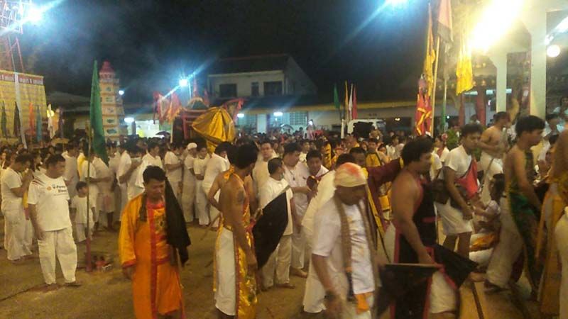 โดยมีประชาชนและนักท่องเที่ยวตลอดจนผู้มีจิตศรัทธาเข้าร่วมพิธีจำนวนมากบรรดาชาวไทยเชื้อสายจีนและผู้มีจิตศัทธาร่วมพิธีกรรมรับองค์องค์กิ้วอ๋องไต่ที่ในบริเวรศาลเจ้ากว่า 2,000 คนทั้งนี้ทาง อบจ.กระบี่ กำหนดให้วันที่ 12 ต.ค.ที่จะถึง เป็นวันที่ทุกศาลเจ้าจะจัดขบวนองค์ศักดิ์สิทธิ์ ออกโปรดลูกหลาน ในเขตเทศบาลเมืองกระบี่