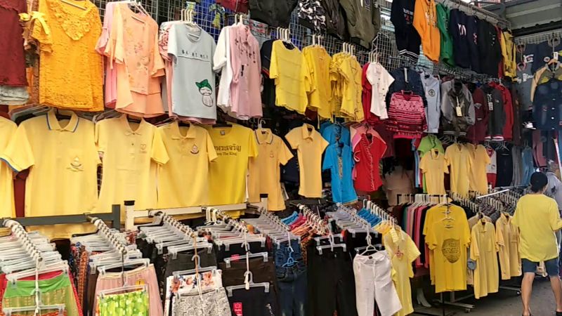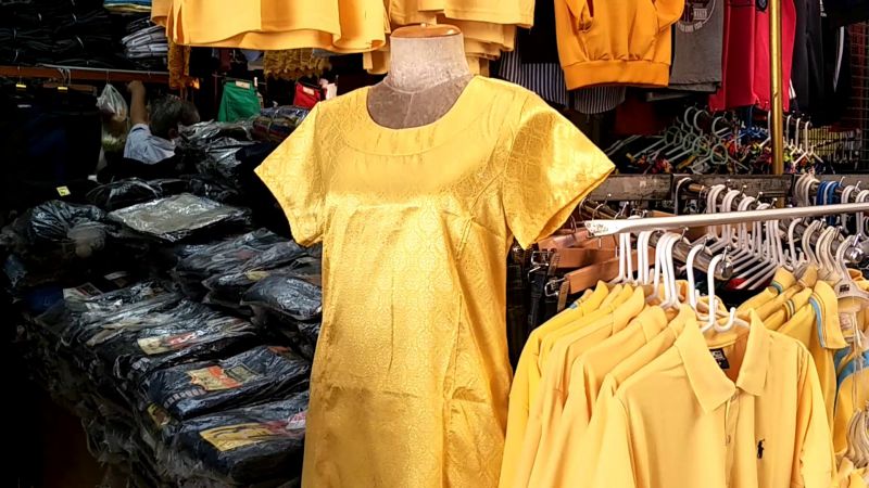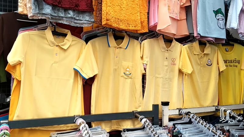 12 ต.ค.61 ผู้สื่อข่าวรายงานว่าบรรยากาศตามร้านจำหน่ายเสื้อต่างๆ ในตลาดสนามหญ้า เขตเทศบาลเมืองราชบุรี จังหวัดราชบุรี เป็นไปอย่างคึกคัก ทุกร้านพร้อมใจกันน้ำเสื้อสีเหลือง ทั้งแบบผู้หญิงและผู้ชาย ที่มีลวดลายพิมพ์สัญลักษณ์เป็นรูปเลข 9 ไทย และข้อความทรงพระเจริญ นอกจากนี้ยังมีรูปแบบลายลูกไม้ เสื้อผ้าลายไทยๆ ออกมาจำหน่ายให้กับประชาชนเพื่อไว้สวมใส่ระหว่างวันที่ 12 – 13 ต.ค.2561 เป็นการร่วมกันแสดงออกถึงจงรักภักดี และเทิดทูนพระมหากรุณาธิคุณ ของพระบาทสมเด็จพระปรมินทรมหาภูมิพลอดุลยเดช บรมนาถบพิตร รัชกาลที่ 9 และเป็นวันคล้ายวันสวรรคต 13 ต.ค.
