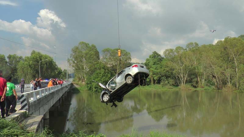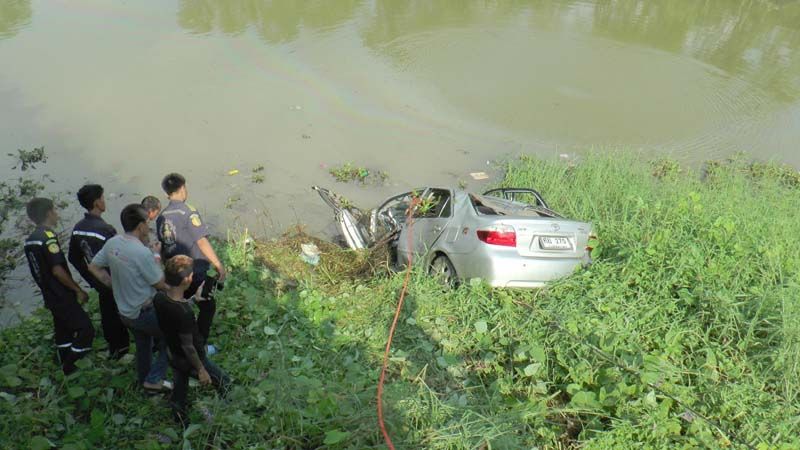 ผู้เห็นเหตุการณ์เล่าว่า เห็นรถยนต์เก๋งวิ่งมาด้วยความเร็ว พอลงเนินช่วงสะพานเป็นทางโค้งเล็กน้อย รถยนต์เก๋งได้เสียหลักพุ่งข้ามเลนชนขอบปูนราวสะพาน รถเหินพลิกคว่ำจมหายไปในน้ำ จึงได้ร้องตะโกนให้คนมาช่วย แต่ไม่สามารถช่วยได้ เพราะน้ำลึก แล้วรถยนต์เก๋งก็จมหายไปต่อหน้าต่อตา จากนั้นจึงแจ้งให้กู้ภัยมาช่วยงมหาร่างคนขับออกมาจากรถ แต่ก็ช่วยไม่ได้เพราะน้ำลึก จึงประสานรถแทรกเตอร์นำสลิงมาดึงลากรถยนต์เก๋งขึ้นจากน้ำ จึงสามารถนำศพออกมาได้ จากนั้นได้ประสานรถเครนมายก รถยนต์เก๋งขึ้นมาจากคลอง