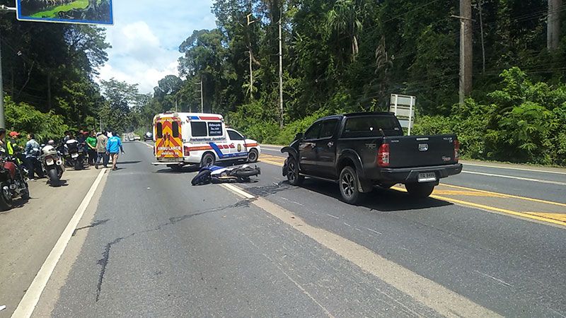 เหตุเกิดที่บริเวณถนนเพชรเกษม ขาออก ม.1 ต.เขาคราม อ.เมือง จ.กระบี่ เป็นเหตุให้คนขับรถจักรยานยนตบิ๊กไบค์ทราบชื่อนายวีรเทพ มาลยาลม อายุ 20 ปี คนขับ บ้านเลขที่ 145/5 ม.1 ต.ย่านตาขาว จ.ตรัง ได้รับบาดเจ็บที่ไหปลาร้าขวา และถูกน้ำร้อนจากหม้อน้ำลวกที่ต้นขาขวา บริเวณขาหนีบ ตอนนี้อาการปลอดภัยแล้วและมีเด็กอายุประมาณ 8 - 12 ปี ที่นั่งมากับรถกระบะสีขาว 2 คน มีบาดแผลถลอกได้รับบาดเจ็บเล็กน้อย เจ้าหน้าที่กู้ภัยนำตัวส่งโรงพยาบาลกระบี่
