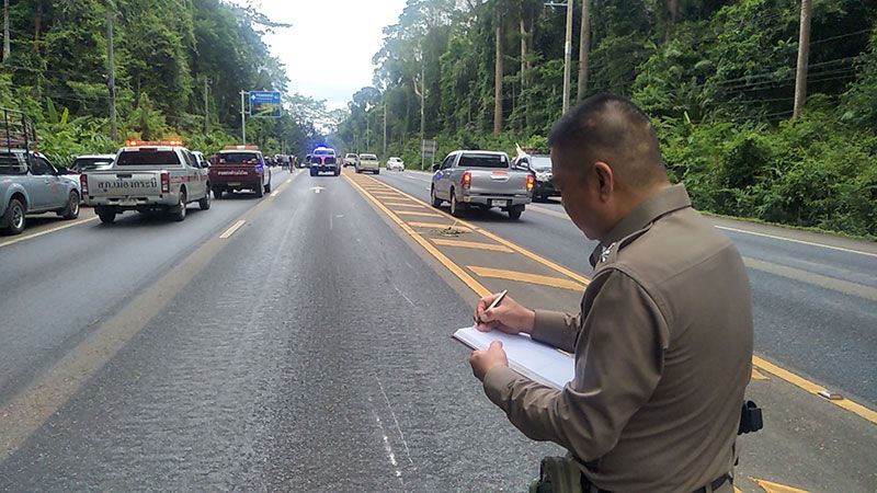 4 พ.ย.61 เมื่อเวลา 15.00 น. พ.ต.ท.ชาติชาย นาคปักษี สว.สอบสวน สภ.เมืองกระบี่ พร้อมเจ้าหน้าที่หน่วยกู้ภัยมูลนิธิประชาสันติสุขกระบี่ เข้าตรวจสอบอุบัติเหตุรถกระบะ โตโยต้า 4 ประตู สีดำ ทะเบียน กฉ 8499 ตรัง ชนกับรถกระบะอีซูซุสีขาว บพ 2463 กระบี่ ทะเบียนตกลงข้างทาง ก่อนไปชนกับรถจักรยานยนต์บิ๊กไบค์ หมายเลขทะเบียน 1กฒ 1481 ตรัง