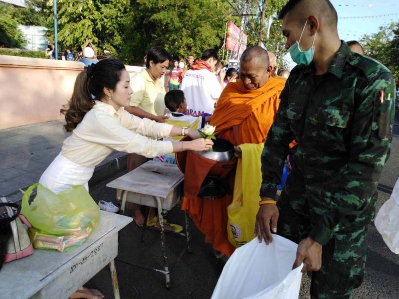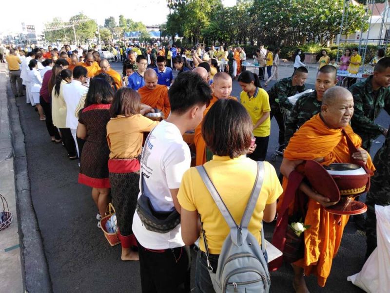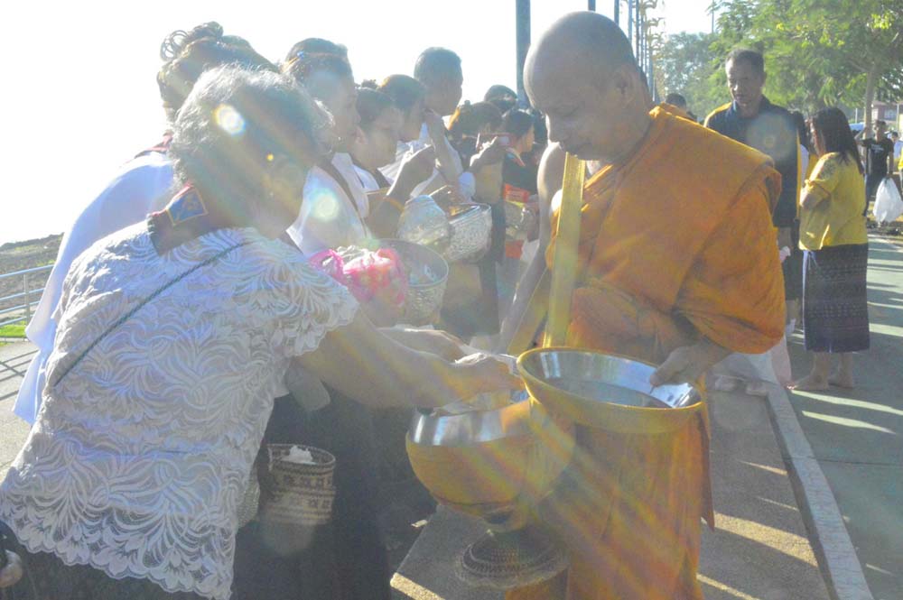 โดยผู้ที่มาร่วมทำบุญตักบาตรในครั้งนี้ ส่วนใหญ่นำข้าวสารอาหารแห้งมาทำบุญอย่างความอิ่มเอิบใจ ที่ได้ทำบุญตักบาตรถวายเป็นพระราชกุศลพระบาทสมเด็จพระปรมินทรมหาภูมิพลอดุลยเดช บรมนาถบพิตร เนื่องในวันคล้ายวันเฉลิมพระชนมพรรษา วันชาติ และวันพ่อแห่งชาติ 5 ธันวาคม 2561