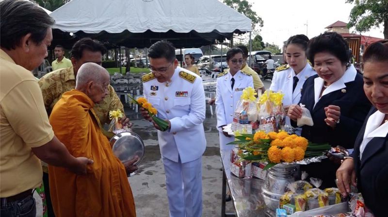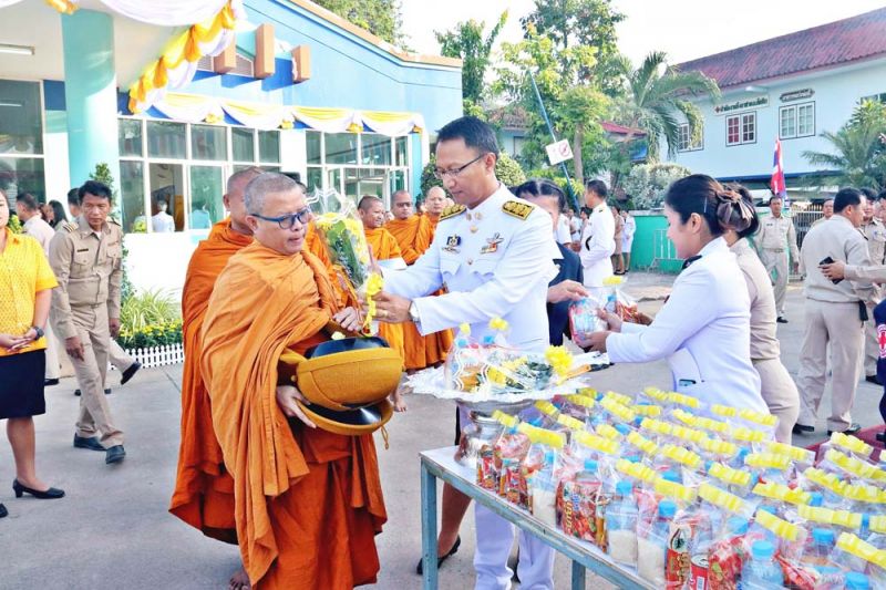 นาย อนุชา อินทศร นายอำเภอสัตหีบ พร้อมด้วย ข้าราชการ ทหาร ตำรวจ ผู้นำองค์กรปกครองส่วนท้องถิ่น ประชาชน ทุกหมู่เหล่า ร่วมพิธีทำบุญใส่ตักบาตรข้าวสาร อาหารแห้ง แด่พระสงฆ์ เพื่อถวายเป็นพระราชกุศล เนื่องในวันคล้ายวันเฉลิมพระชนมพรรษา พระบาทสมเด็จพระปรมินทรมหาภูมิพลอดุลยเดช รัชกาลที่ 9 วันที่ 5 ธันวาคม 2561 วันพ่อแห่งชาติ ณ ศาลาประชาคม อำเภอสัตหีบ จ.ชลบุรี