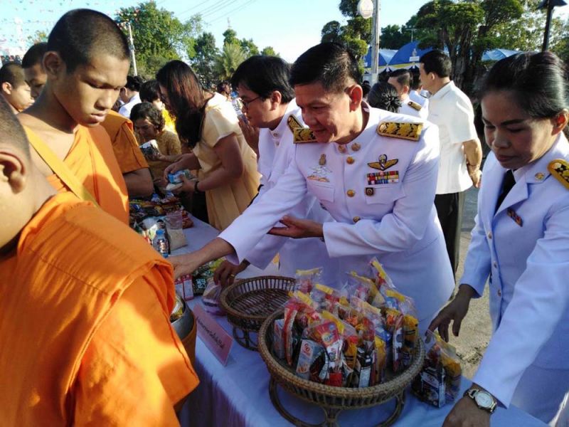 เมื่อเวลา 07.00 น. นายวันชัย คงเกษม ผู้ว่าราชการจังหวัดร้อยเอ็ดพร้อมด้วย นางนงรัตน์ คงเกษม นายกเหล่ากาชาดจังหวัดร้อยเอ็ด นำข้าราชการตุลาการ หน้าส่วนราชการ ทหาร ตำรวจ พลเรือน และประชาชนประกอบพิธีทำบุญตักบาตรพระสงฆ์และสามเณรจำนวน 50 รูป เพื่อถวายเป็นพระราชกุศลพระบาทสมเด็จพระปรมินทรมหาภูมิพลอดุลยเดช บรมนาถบพิตร เนื่องในโอกาสวันคล้ายวันเฉลิมพระชนมพรรษาพระบาทสมเด็จพระปรมินทรมหาภูมิพลอดุลยเดช บรมนาถบพิตร วันชาติ และวันพ่อแห่งชาติ พุทธศักราช 2561 ณ ลานสาเกตนคร สวนสมเด็จพระศรีนครินทร์ร้อยเอ็ด อำเภอเมืองร้อยเอ็ด