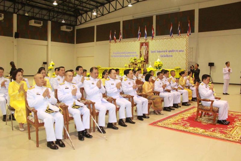 จังหวัดเชียงราย ร่วมกันจัดพิธีทางศาสนาเนื่องในโอกาสวันคล้ายวันเฉลิมพระชนมพรรษา พระบาทสมเด็จพระปรมินทรมหาภูมิพลอดุลยเดช บรมนาถบพิตร วันชาติและวันพ่อแห่งชาติ ประจำปี 2561 ที่ศูนย์ประชุมและแสดงสินค้าจีเอ็มเอส อำเภอเมือง จังหวัดเชียงราย นายประจญ ปรัชญสกุล ผู้ว่าราชการจังหวัดเชียงราย พร้อมด้วยข้าวราชการ หน่วยงานรัฐวิสาหกิจ พ่อค้า ประชาชนและพสกนิกรชาวจังหวัดเชียงราย ร่วมกันจัดพิธีทางศาสนาเนื่องในโอกาสวันคล้ายวันเฉลิมพระชนมพรรษา พระบาทสมเด็จพระปรมินทรมหาภูมิพลอดุลยเดช บรมนาถบพิตร วันชาติและวันพ่อแห่งชาติ ประจำปี 2561 ขึ้น หลังเสร็จพิธีสงฆ์ได้ร่วมกันทำบุญตักบาตรพระสงฆ์จำนวน 89 รูป จากนั้นได้จัดให้มีพิธีถวายพานพุ่มดอกไม้ประดิษฐ์ของหน่วยงาน หน้าพระบรมฉายาลักษณ์พระบาทสมเด็จพระปรมินทรมหาภูมิพลอดุลยเดช บรมนาถบพิตร ถวายราชดุดีน้อมรำลึกในพระมหากรุณาธิคุณของพระบาทสมเด็จพระปรมินทรมหาภูมิพลอดุลยเดช บรมนาถบพิตร เป็นอันเสร็จพิธี
