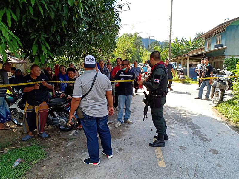 28 ธ.ค.61 เมื่อเวลา 14.00 น. ร.ต.อ.สมภพ บุญจันทร์ รอง สว.(สอบสวน) พนักงานสอบสวนเวร สภ.นาประดู่ อ.โคกโพธิ จ.ปัตตานี ได้นำกำลัง ตำรวจ ทหาร เข้าตรวจสอบที่เกิดเหตุ หลังรับแจ้งเกิดเหตุคนร้ายใช้อาวุธปืนยิง นายตูแวมะ นิบีรู อายุ 43 ปี ผู้ช่วยผู้ใหญ่บ้านฝ่ายรักษาความสงบเรียบร้อย (ผรส.) ต.ปากล่อ อ.โคกโพธิ์ จ.ปัตตานี เสียชีวิต เหตุเกิดบนถนนสาย 409 ม.4 ต.ปากล่อ อ.โคกโพธิ์ เมื่อถึงที่เกิดเหตุพบว่าผู้เสียชีวิตถูกนำส่งโรงพยาบาลแล้ว