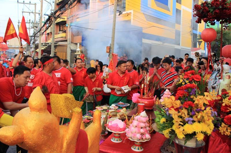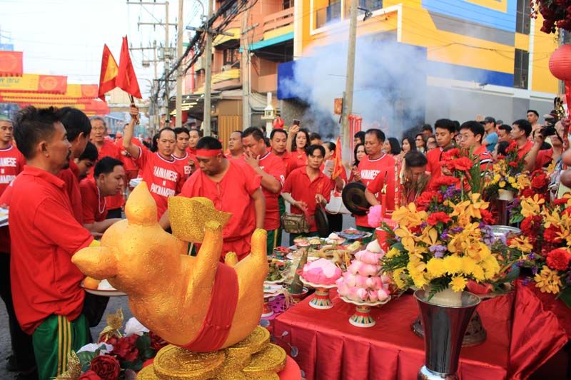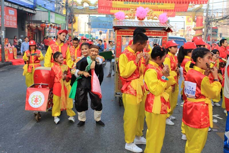 โดยจะทำการปิดถนนตั้งแต่ช่วงแยกสะพานเดชาติวงศ์ฝั่งเข้าเมืองไปตลอดเส้นทางตามตัวเมืองทั้งวันโดยในขบวนก็จะมีคณะมังกร สิงโต และขบวนรำถ้วยก็จะไปหน้าร้านค้าบ้านเรือนและนำคณะสิงโตและมังกรเข้าบ้านเรือนเพื่อปัดเป่าสิ่งไม่ดีและเพื่อความเป็นศิริมงคลอีกด้วย ด้านขบวนแห่ในวันนี้คาดว่าจะใช้เวลาทั้งวันเพื่อที่จะแห่รอบเมืองไปสิ้นสุดที่ริมแม่น้ำเจ้าพระยาจะใช้เวลาประมาณถึง 19.00 น. หากท่านใดมีภารกิจในตัวเมืองควรเลี่ยงเส้นทางก่อนเพื่อความสะดวกรวดเร็ว