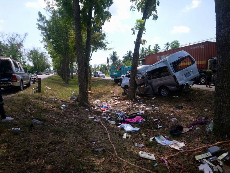 จากการสอบสวนเบื้องต้นได้การว่า รถตู้คันดังกล่าวได้รับการว่าจ้าง จาก จ.ภูเก็ต เพื่อไป กทม.ทั้งผู้โดยสารและคนขับ จำนวน 11 คน เมื่อเดินทางมาถึงที่เกิดเหตุ รถได้เกิดยางล้อหน้าระเบิด เสียหลักพุ่งตกลงไปในร่องกลาง ชนกับต้นไม้ในร่องกลาง เสียงดังสนั่น ด้วยความเร็ว ทำให้รถยุบเข้าไปถึงครึ่งคัน เป็นเหตุให้มีผู้เสียชีวิตทันทีในที่เกิดเหตุ 4 ศพ และได้รับบาดเจ็บสาหัสเป็นตายเท่ากัน อีก 7 คน สำหรับผู้โดยสารทั้ง10 คน เป็น เจ้าหน้าที่ของกรมเจ้าท่า ที่ไปทำงาน ใน จ.ภูเก็ต และกำลังจะเดินทางกลับภูมิลำเนา โดยได้เหมารถตู้ให้ไปส่งที่ กทม. แต่มาเกิดเหตุเสียก่อน