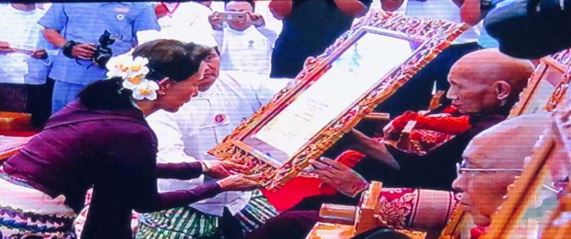 คณะรัฐบาลสาธารณรัฐแห่งสหภาพเมียนมาจัดพิธีถวายสมณศักดิ์แด่พระภิกษุสงฆ์และมอบรางวัลเชิดชูเกียรติแด่ผู้สร้างคุณูปการให้กับพระพุทธศาสนา ประจำปีพุทธศักราช 2562 ณ อาคารศาสนมหาพิมาน หน้าพระมหาเจดีย์อุปปาตสันติ เมืองหลวงเนปยีดอ เมื่อวันที่ 20 มี.ค.62 โดยได้รับเกียรติจาก ฯพณฯ นางอองซาน ซูจี ที่ปรึกษาแห่งรัฐ และรัฐมนตรีว่าการกระทรวงการต่างประเทศ และ ฯพณฯ อู วี่น มหยิ่น ประธานาธิบดีแห่งสาธารณรัฐแห่งสหภาพพม่า เป็นประธาน พร้อมด้วยคณะรัฐมนตรี แขกผู้มีเกียรติจากทั้งภาครัฐ,เอกชน และผู้แทนองค์กรศาสนานานาชาติเข้าร่วมงานเป็นจำนวนมาก