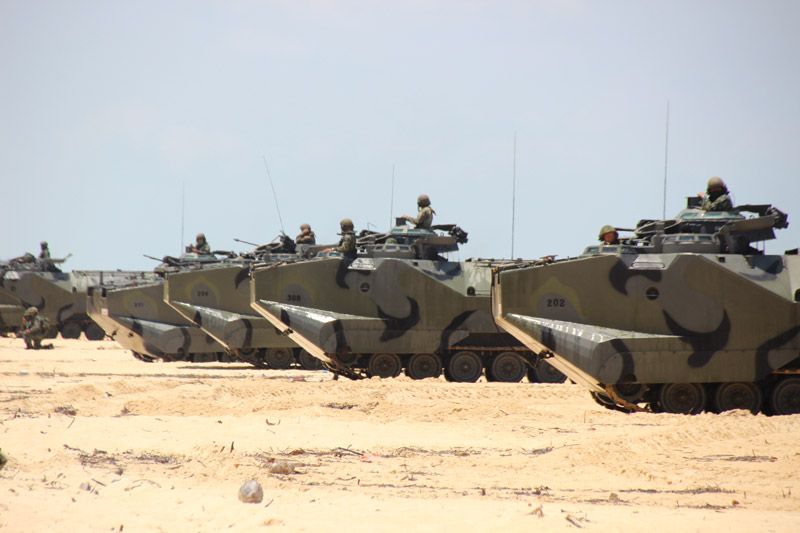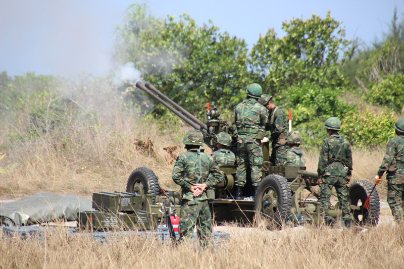 การฝึกในวันนี้เริ่มด้วยการฝึกยิงอาวุธทางยุทธวิธี โดยเมื่อผู้บังคับการกรมรักษาฝั่งที่ 1 บรรยายสรุปการยิงแล้ว หน่วยยิง กองพันต่อสู้อากาศยานที่ 22 ได้ทำการฝึกยิงเป้าอากาศยาน หน่วยยิง กองพันรักษาฝั่งที่ 11 ฝึกยิงทางยุทธวิธี และหน่วยยิงจาก กองพันต่อสู้อากาศยานที่ 22 และ กองพันปืนใหญ่ต่อสู้อากาศยาน กองพลนาวิกโยธิน ได้ทำการยิงอาวุธปล่อยประทับบ่าแบบ QW – 18 ตามลำดับ จากนั้น กองเรือยกพลขึ้นบก กองเรือยุทธการ และ กองพลนาวิกโยธินได้บรรยายสรุปภาพรวมการฝึกปฏิบัติการยุทธ์สะเทินน้ำสะเทินบกต่อด้วยการบรรยายสรุปจากกองเรือทุ่นระเบิด กองเรือยุทธการ ในการฝึกจุดทุ่นระเบิด จากนั้นจึงเข้าสู่การฝึกปฏิบัติการยุทธ์สะเทินน้ำสะเทิน
