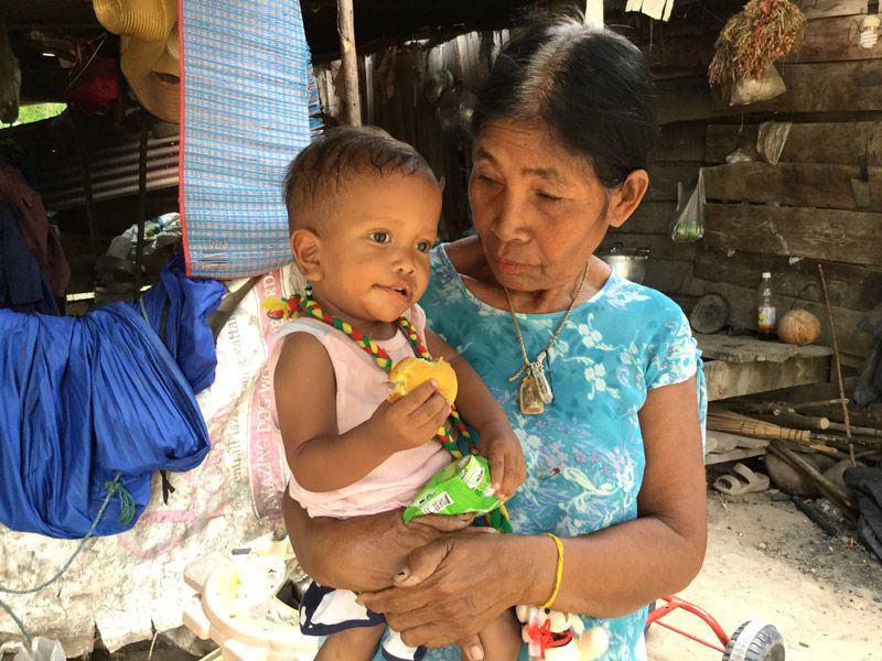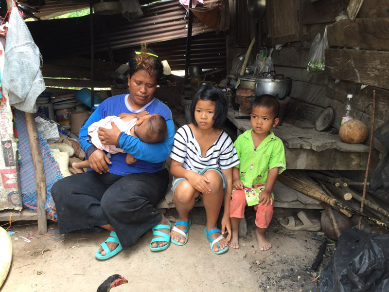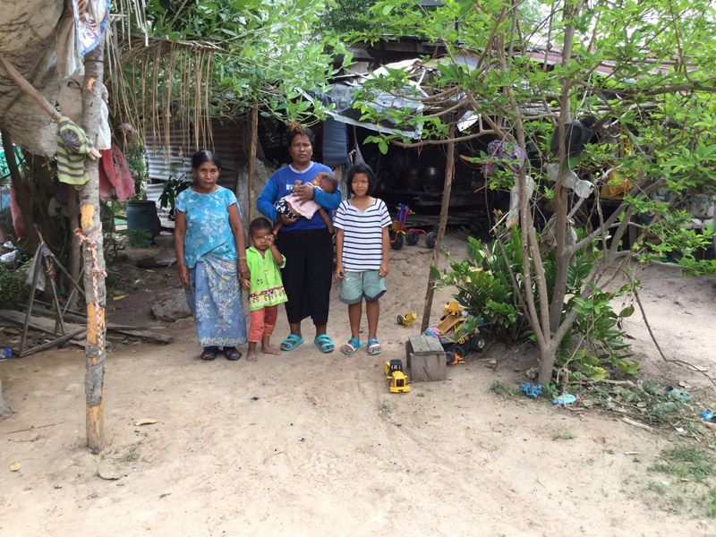 นางสาวกัญรัตน์ บัวพันธ์ อายุ 34 ปี กล่าวว่า ตนได้แฟนใหม่ก็ย้ายมาอยู่ที่สุรินทร์ มีลูก 2คน รวมน้องออมสินด้วยก็เป็น 3 คน คนกลางเป็นโรคหืดหอบ คนเล้กเป็นโรคหัวใจ ส่วนน้องออมสินเป็นโรคเลือดจาง ขณะตั้งครรถ์ก็ไปตรวจมาโดยตลอด ออมสินมาตรวจเจอตอนโต เป็นโรคเลือดจาง หมอให้กินยาเพื่อรักษาอาการ ตอนนี้เดือดร้อนในเรื่องที่อยู่อาศัย บ้านหลังนี้อาศัยอยู่ 7-8 คน มีย่า สามี ตนและลูกอีก 3 คน หลานและน้องชายของแฟนอีกคน เวลาฝนตกมาก็จะรั่ว กลางวันก็จะร้อนมากๆแทบจะอยู่ไม่ได้เพราะหลังคาเป็นสังกะสี เวลานอนก็แยกนอนที่นอนมุ้งใครมุ้งมัน ชีวิตยากลำบากเวลาไม่มีเงิน ต้องหาปูหาปลามาทำกับข้าวเพื่อประทังชีวิต ตอนนี้สามีรับจ้างปูกระเบื้องอยู่ข้างบ้าน โชคดีที่ได้รับบัตรสวัสดิการแห่งรัฐ ของตนและสามีก็พอได้ รูดซื้อข้าวสารอาหารมารับประทาน ตนอยากให้สังคมช่วยเหลือ อยากมีบ้านสักหลังเหมือนคนอื่นๆเขา