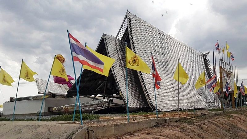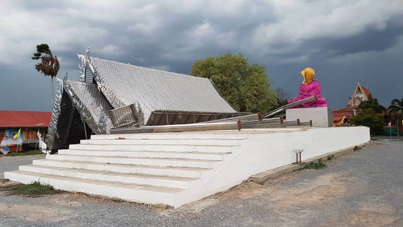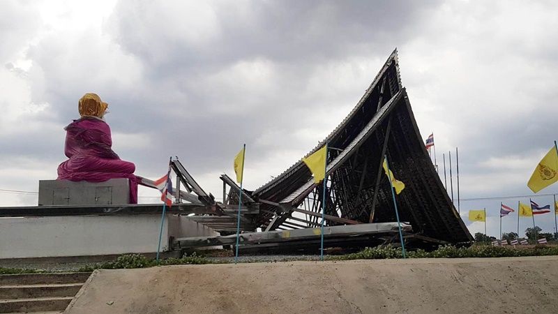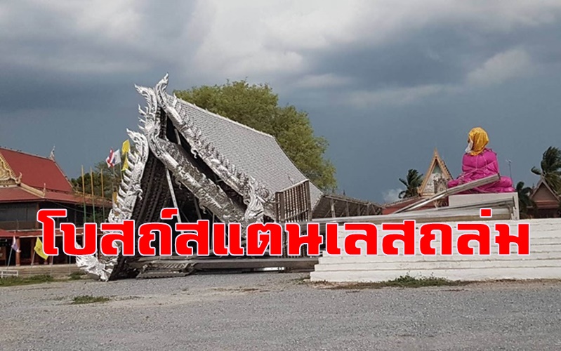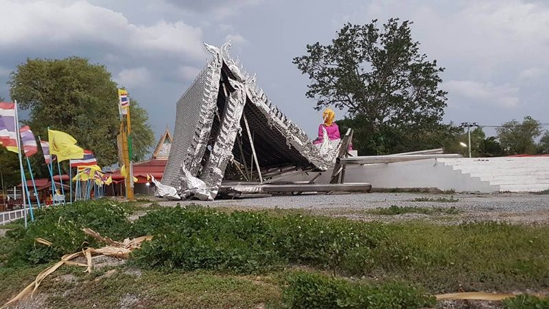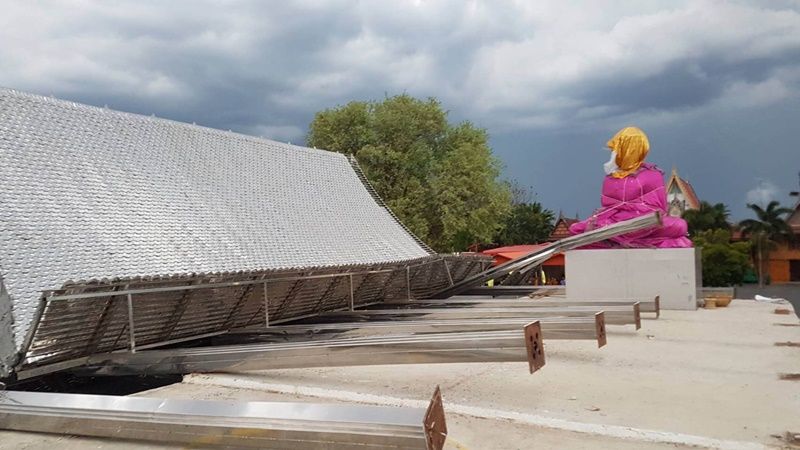 ผู้สื่อข่าวรายงานว่า เมื่อช่วงเย็นวันที่ 4 พ.ค.ที่ผ่านมา เกิดพายุพัดถล่มอย่างแรงในพื้นที่ อ.เดิมบางนางบวช จ.สุพรรณบุรี โดยเฉพาะที่วัดดอนเก้า เลขที่ 112 หมู่ 2 ต.บ่อกรุ อ.เดิมบางนางบวช โบสถ์สแตนเลส ซึ่งมีพระประธานองค์ปฐมทรงเครื่องจักรพรรดิ หน้าตักกว้าง 118 นิ้ว สูง 5 เมตร ที่กำลังก่อสร้างไปแล้วกว่า 50 เปอร์เซ็นต์ ได้พังคลื่นลงมาทั้งหลัง โชคดีที่ไม่มีผู้ได้รับบาดเจ็บหรือเสียชีวิต นอกจากนี้ ยังมีบ้านเรือนประชาชนได้รับความเสียหายส่วนหนึ่ง เช่นหลังคาปลิวจากแรงพายุ