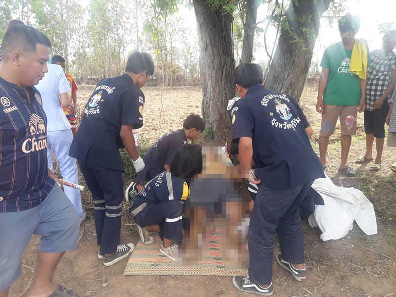 8 พ.ค.62 ร.ต.อ.ณภัทร สุทธิธนากูล รองสารวัตร (สอบสวน) สภ.นางรอง จ.บุรีรัมย์ ได้รับแจ้งมีคนผูกคอเสียชีวิตใต้ต้นไม้บ้านหนองม่วง ต.ถนนหัก อ.นางรอง จึงรุดไปตรวจสอบพร้อมหน่วยกู้ภัยสยามรวมใจปู่อินทร์ฯ ที่เกิดเหตุบริเวณใต้ต้นมะขามใหญ่ พบศพนายอุดม วังพา อายุ 61 ปี อยู่บ้านเลขที่ 57หมู่ 12 บ้านหนองม่วง ต.ถนนหัก อ.นางรอง สวมเสื้อยืดสีเหลือง กางเกงขาสั้น นอนเสียชีวิตในลักษณะที่ลำคอมีเถาวัลย์พันรอบคอ นอกจากนี้ ยังพบขวดยาฆ่าหญ้า 1 ขวด คาดเสียชีวิตมาไม่น้อยกว่า 6 ชั่วโมง