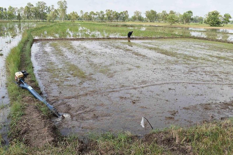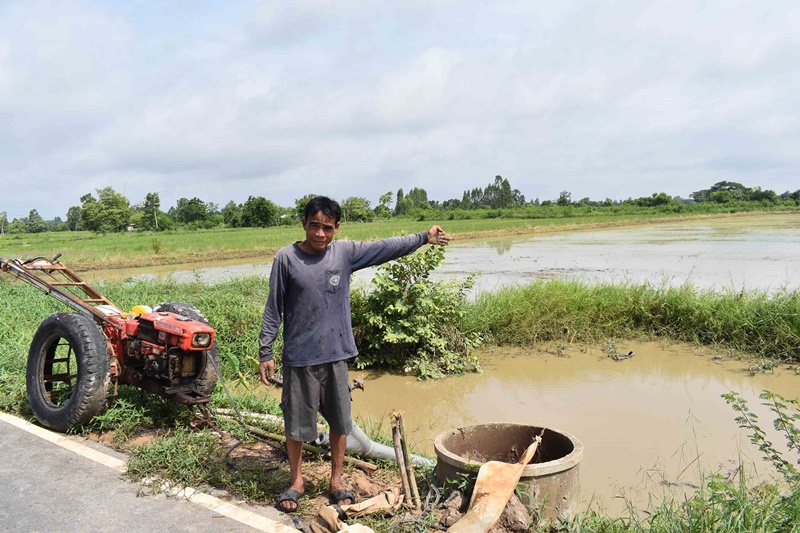 นายสายทอง กล่าวอีกว่า ปัญหาน้ำท่วมแปลงนาดังกล่าว เป็นภัยธรรมชาติที่สร้างความเดือดร้อนให้กับชาวนาที่ทำนาหว่าน ทั้งนี้ ปัญหาเกิดจากฝนที่ตกชุก จึงเกิดการสะสมของน้ำฝนที่ขังอยู่ตามรางระบายน้ำ และดินเกิดการอิ่มตัว รวมทั้งลำรางสาธารณะและทางน้ำธรรมชาติเกิดการตื้นเขิน พอมีฝนตกหนักติดต่อกันทำให้น้ำระบายไม่ทัน จึงเกิดภาวะน้ำท่วมขังดังกล่าว ชาวนาต้องพึ่งตนเองด้วยการหาเครื่องสูบน้ำมาติดตั้งและเร่งสูบออกจากแปลงนา และต้องสูบติดต่อกันนานตลอดวันยันคืน เพื่อระบายน้ำออกให้หมด และต้องพากันนอนเฝ้าเครื่องสูบน้ำกันเลยทีเดียว เนื่องจากกลัวถูกมิจฉาชีพมาลักขโมยเครื่องสูบน้ำ ที่จะทำให้ชาวนาเดือดร้อนเพิ่มขึ้นอีก