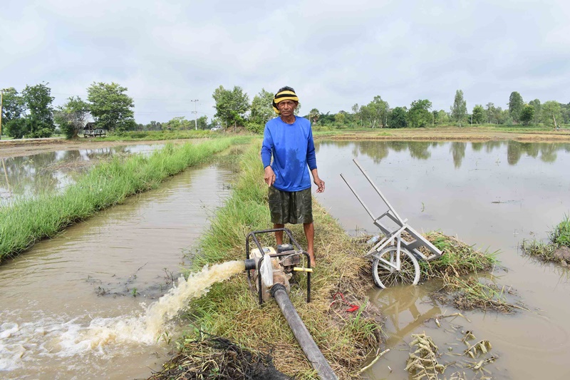 นายสายทอง อุทัยดา อายุ 63 ปี ชาวนาบ้านโคกใหญ่ หมู่ 1 ต.บัวบาน อ.ยางตลาด จ.กาฬสินธุ์ กล่าวว่า ปริมาณฝนที่ตกหนัก ทำให้เกิดน้ำป่าและน้ำที่ไหลจากหมู่บ้านทะลักท่วมนาข้าวที่เพิ่งทำการหว่าน ระดับน้ำท่วมสูงกว่า 30 เซนติเมตร ตนและเพื่อนชาวนาต้องเร่งนำเครื่องสูบน้ำมาสูบน้ำที่ท่วมขังออก เพราะหากสูบออกไม่ทันหรือถูกน้ำท่วมขังนาน ก็จะทำให้เมล็ดพันธุ์ข้าวที่หว่านไว้เน่าเสียหายได้