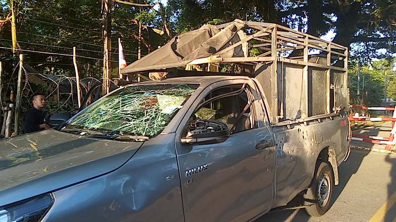 ส่วนรถยนต์กระบะหุ้มเกราะยี่ห้อโตโยต้า แบบตอนเดียวสีฟ้า ทะเบียน บต 1161 นราธิวาส ของเจ้าหน้าที่ทหารได้รับความเสียหายที่กระจกหน้าแตก ตัวถังด้านซ้ายเป็นรูพรุน โดยเจ้าหน้าที่ได้ขับไปไว้ที่ค่ายจุฬาภรณ์ ต.โคกเคียน อ.เมืองนราธิวาส เจ้าหน้าที่จึงได้เก็บรวบรวมหลักฐานในที่เกิดเหตุ ส่วนผู้ได้รับบาดเจ็บเล็กน้อยทั้ง 3 นาย เพื่อนทหารได้นำตัวส่งรักษาที่โรงพยาบาลบาเจาะ ไปก่อนหน้าแล้ว โดยทั้ง 3 นาย มีอาการแน่นหน้าอกและหูอื้อ ประกอบด้วย 1. พ.จ.อ.เชิดชัย อินต๊ะวิกุด 2. อาสาสมัครทหารพรานธีระวัฒน์ ศรีสุข และ 3. อาสาสมัครทหารพรานวิทยา อักขชาติ