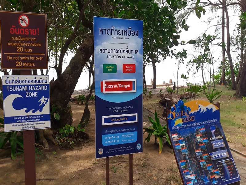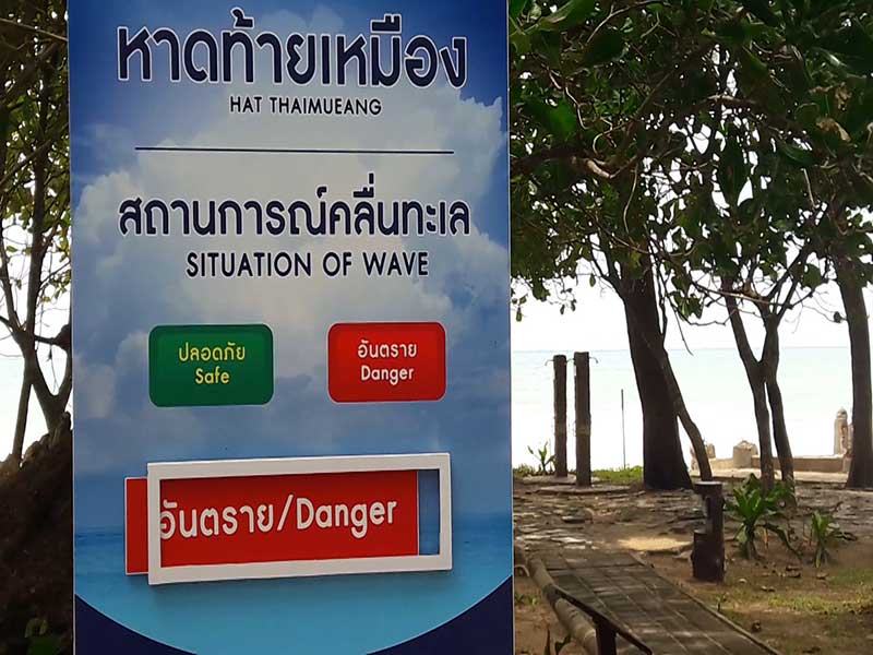 28 สิงหาคม 2562 ผู้สื่อข่าวรายงาน ที่บริเวณศูนย์ให้บริการนักท่องเที่ยว อุทยานแห่งชาติเขาลำปี-หาดท้ายเหมือง ต.ท้ายเหมือง อ.ท้ายเหมือง จ.พังงา ทางอุทยานแห่งชาติเขาลำปี-หาดท้ายเหมือง ได้ติดธงแดงพร้อมป้ายอันตรายห้ามลงเล่นน้ำบริเวณชายหาดท้ายเหมือง หลังพบคลื่นลมแรงในพื้นที่ โดยเฉพาะบริเวณชายหาดท้ายเหมือง ซึ่งเป็นชายทะเลมีลักษณะเป็นท้องกระทะ ห้ามเล่นน้ำห่างจากฝั่งเกิน 20 เมตร