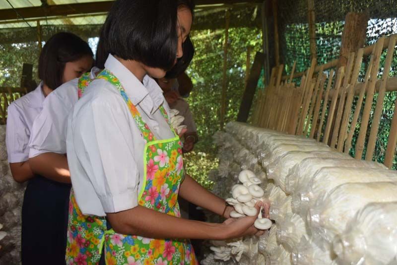 ทั้งนี้ การศึกษา 2561 การเพาะเห็ดที่ผ่านมาของนักเรียนชั้น ม.6 ไม่ประสพผลสำเร็จ เนื่องจากการเพาะเชื้อเห็ดเอง ต่อมา ปีการศึกษาที่2562 จึงปรึกษากับคุณครูในที่ประชุม และนักเรียน ชั้น ม.6 เห็นตรงกันว่า ใ ห้สั่งซื้อเชื้อเห็นก้อนนางฟ้าสำเร็จมาเลยดีกว่าเป็นจำนวน 1,000ก้อน ใช้งบประมาณหนึ่ง จำนวนเงิน 9,000บาท ตกก้อนละ9บาท รายได้ส่วนหนึ่งที่ขายได้แต่ละครั้งจะแบ่งไว้ 2ส่วน ส่วนนักเรียนชั้น ม.6 ส่วนต้นทุนไว้ต่อยอดในการซื้อเชื้อก้อนเห็ดนางฟ้ามาอีกที่ การดูแลก็จะเป็นนักเรียน พลัดกันรดน้ำช่วงเช้า และช่วงเย็น การรดน้ำเชื้อเห็ดก็ต้องดูบรรยากาศท้องฟ้าและความชื้น ถ้าความชื้นมากก็ให้รดน้ำน้อยๆถ้าแสงด้านมากก็จะรดน้ำมากหน่อย