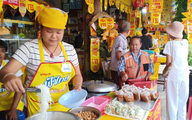บรรยากาศ ถือศีลกินเจวันแรก บนถนนสายบุญ คึกคักมีประชาชนจำนวนมากต่างพากันเดินทางมาเลือกซื้ออาหารเจไปรับประทานกันเป็นจำนวนมากตั้งแต่เปิดร้าน