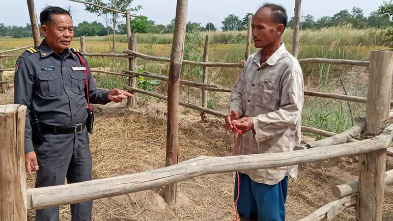 นายวรจันทร์ บอกอีกว่า คอกควายแห่งนี้ตนอาศัยที่นาของญาติทำคอกควายเอาไว้ เพราะเจ้าของที่นาเขาอยากได้มูลควายเอาไว้ทำปุ๋ยในแปลงนาในปีหน้า โดยมาทำคอกเอาไว้เมื่อ 3 เดือนที่แล้ว ปกติจะนอนที่ทุ่งนาอีกที่หนึ่งที่ห่างไปประมาณ 1 กม. ตนไม่ได้มานอนเฝ้าเพราะปกติควายไม่เคยหาย และที่ผ่านมาในหมู่บ้านก็ไม่เคยมีเรื่องวัวควายหายเช่นกันจนมาเจอกับตัวเองจนได้