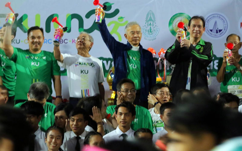 โดย ดร.จงรัก วัชรินทร์รัตน์ รักษาการแทนอธิการบดี มหาวิทยาลัยเกษตรศาสตร์ นิสิตเก่า KU 46 ประธานคณะกรรมการอำนวยการโครงการเดิน-วิ่ง เพื่อสุขภาพฯ นายนิพนธ์ ลิ้มแหลมทอง นายกสมาคมศิษย์เก่ามหาวิทยาลัยเกษตรศาสตร์ฯ นิสิตเก่า KU 34