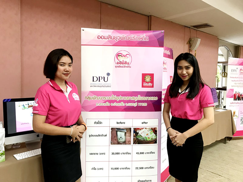 นางสาวธันย์ชนก ทองนิ่ม เล่าให้ฟังเพิ่มเติมอีกว่า โครงการช่วยพัฒนาชุมชนของพวกเราในครั้งนี้พวกเราได้รับการส่งเสริมจากธนาคารออมสิน ผ่านโครงการ “ออมสินยุวพัฒน์รักษ์ถิ่น” โดยมีเป้าหมายเพื่อส่งเสริมให้นักศึกษานำองค์ความรู้ที่ได้เรียนจากภาคทฤษฎีมาประยุกต์ใช้ในการพัฒนาศักยภาพชุมชน อันจะนำไปสู่การพัฒนารายได้และความเป็นอยู่ของชุมชนอย่างยั่งยืนต่อไป