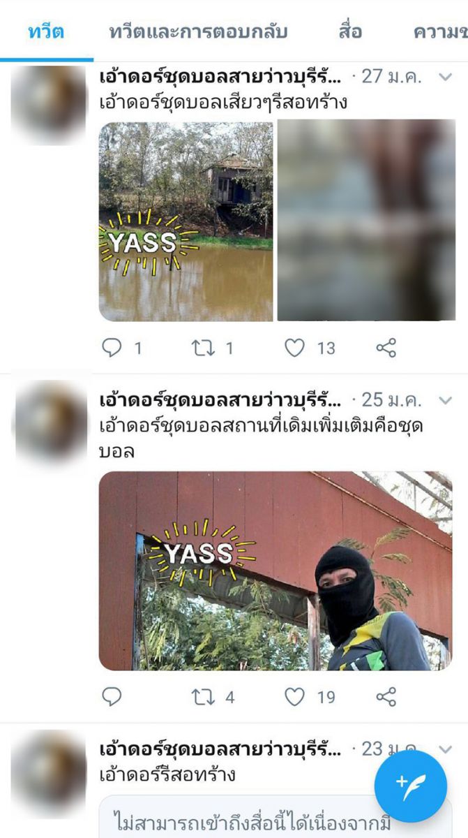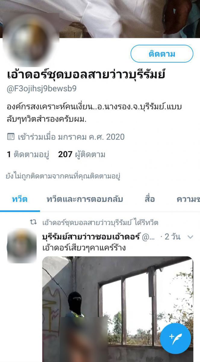 จากการตรวจสอบเบื้องต้นข้อมูลพบว่า ผู้ใช้ทวิตเตอร์ดังกล่าว เพิ่งเปิดใช้งานเมื่อเดือนสิงหาคม 2562 ที่ผ่านมา มีสมาชิกเข้าไปติดตามกว่า 6,000 คน โดยจะเลือกสมาชิกเป็นชาวอำเภอนางรองเท่านั้น ทั้งนี้ในทวิตดังกล่าวยังมีการโพสต์ภาพในลักษณะลามกอนาจารอีกหลายรูป ส่วนใหญ่จะเป็นภาพผู้ชายสวมไอ้โม่งยืนโชว์เจ้าโลกในอาคารเก่า ในป่า อู่รถเก่า หรือรีสอร์ทเก่าที่ปล่อยทิ้งร้าง กระทั่งมีคนเข้าไปพบเห็นทวิตเตอร์ดังกล่าว มองว่าเป็นการกระทำที่ไม่เหมาะสมทั้งเกรงจะเกิดพฤติกรรมเลียนแบบ จึงได้แจ้งเจ้าหน้าที่ให้เข้าไปตรวจสอบและเร่งติดตามตัวผู้โพสต์มาดำเนินคดี