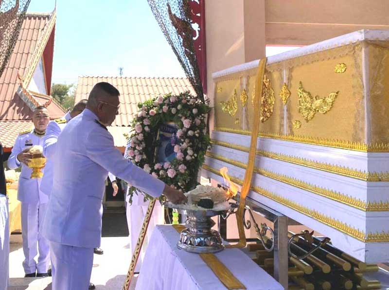 พลเรือเอก ปวิตร รุจิเทศ รองผู้บัญชาการ หน่วยบัญชาการถวายความปลอดภัยรักษาพระองค์ เป็นประธานในพิธีพระราชทานเพลิงศพ นายวันชัย เวชวรรณ์ ณ วัดบ้านบุขี้เหล็ก ตำบลแสลงพัน อำเภอลำปลายมาศ จังหวัดบุรีรัมย์
