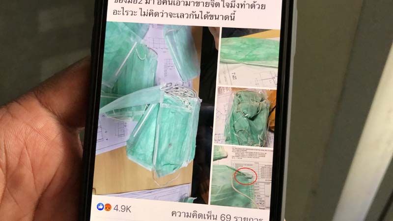 3 มีนาคม 2563 หลังจากมีผู้ใช้เฟสบุ๊ครายหนึ่งโพสต์เฟสบุ๊คภาพถ่ายหน้ากากอนามัย ระบุข้อความโดยรวมว่าสั่งซื้อหน้ากากอนามัยไปแต่กับได้มือ 2 โดยวันนี้น.ส.เอ (นามสมมุติ) อายุ 24 ปีเดินทางมาที่สถานตำรวจภูธรปากเกร็ด จ.นนทบุรี พร้อมนำหลักฐานเป็นหน้ากากอนามัยที่ผู้เสียหายแจ้งว่าเป็นของมือ 2 มาแจ้งความกับเจ้าหน้าตำรวจ สภ.ปากเกร็ด โดยหน้ากากอนามัยดังกล่าวได้ทำการสั่งซื้อผ่านทางเฟสบุ๊ค หลังจากนั้นเพื่อนร่วมงานได้โพสต์เฟสบุ๊คประจานถึงผู้ขายที่กระทำการดังกล่าว